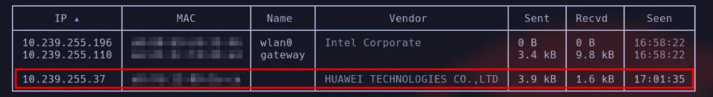 Run net.probe on again and select the target device (e.g., a tablet at 10.239.255.37).